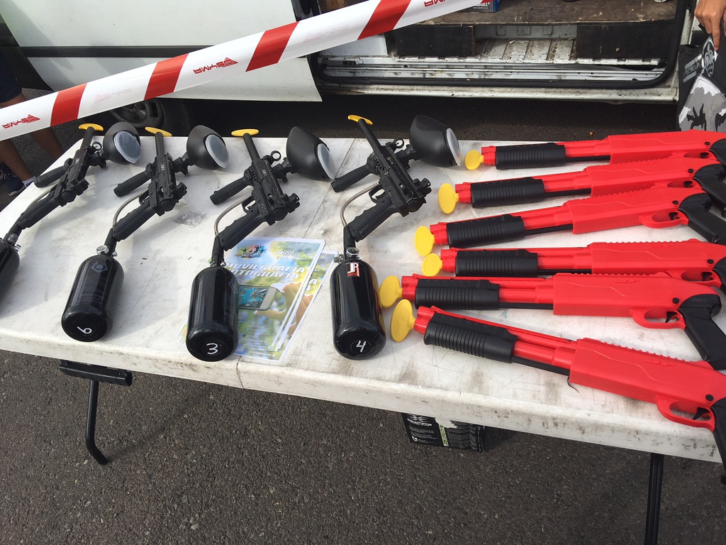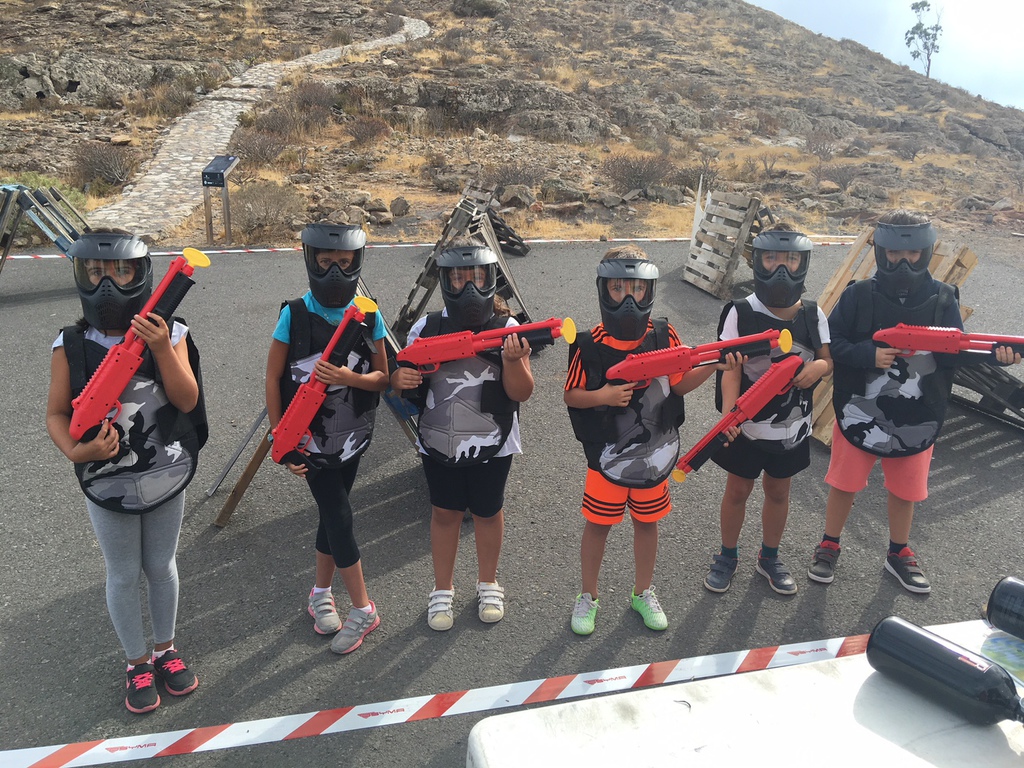 Disponemos de todo el material necesario para la realización de la actividad, marcadoras para adultos (con botella de co2), marcadoras infantiles (con muelle), chalecos, monos especificos, mascaras, guantes...